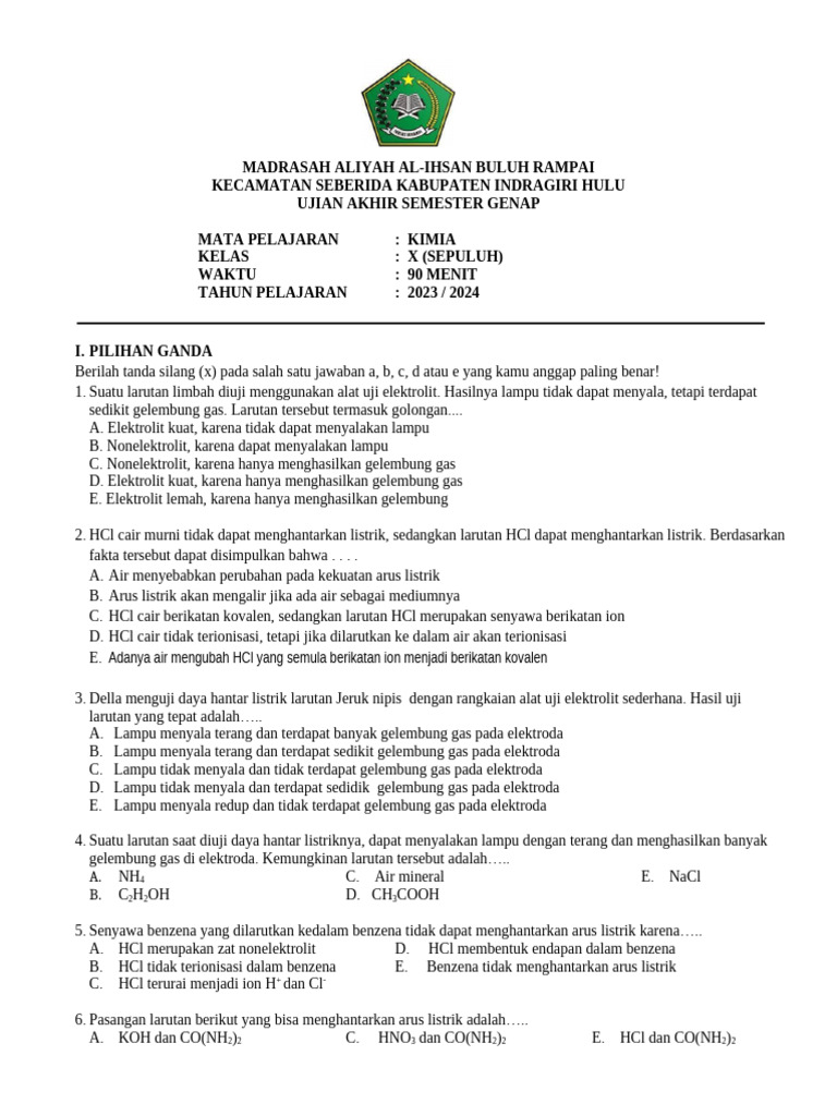 Kimia, sebagai ilmu yang mempelajari materi dan perubahannya, seringkali menjadi mata pelajaran yang menantang namun sangat menarik bagi siswa kelas X. Memasuki semester kedua, materi kimia yang dihadapi biasanya semakin kompleks, menyentuh konsep-konsep fundamental yang akan menjadi dasar bagi studi kimia di jenjang selanjutnya. Untuk membantu Anda menguasai materi ini, artikel ini akan menyajikan beberapa contoh soal kimia kelas X semester 2 beserta pembahasan mendalam.